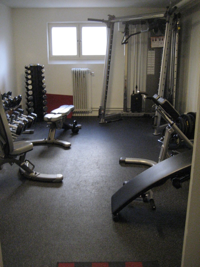 Ett rum har träningscykel , crosstrainer och roddmaskiner. Där finns och pilatesbollar, ribbstol och andra redskap. Det andra rummet har en multimaskin med många olika träningsalternativ. Där finns också hantlar av olika slag samt rygg och magbänkar.